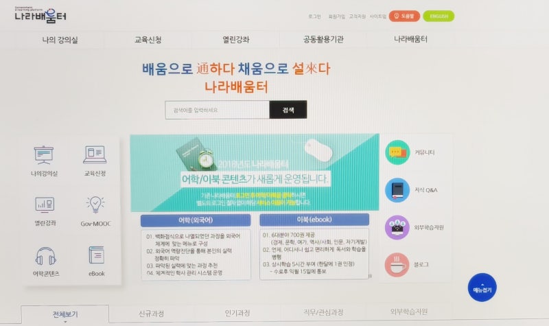 02-2072-6380 현대경제연구원 eBook. 미래지향적인 역략을 갖춘 인재 양성을 위한 온라인 공무원 이러닝 학습 서비스 제공. 나라배움터 pc브라우저 스마트폰어플 오류조치매뉴얼 2021년 내가만든 마이크로러닝 공모 이벤트 공고 국가인재원 나라배움터21년 운영 및 운영과정 안내 입니다.